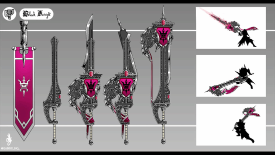 在这次比赛中,Nolan Lu的设计灵感来源于神秘的镜子和破碎的空间,呈现出一种独特而富有想象力的武器形态。设计图中的大剑不仅外观华丽,金色装饰与闪耀的碎片交相辉映,形成了一种令人惊叹的美感。